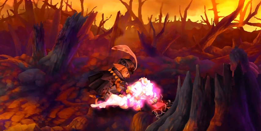 Mercedes tactics remains the same as she did in the original odin sphere but she has a greater variety of attacks in Leifthrasir she also has a dash while in mid-air and unique to her are special bullet hell sections where she has to fly and fire at enemies while moving forward across the screen. These bullet hells can sometimes contain special items so it's best to watch out for them. Also when she doesn't fire after a while she will auto charge a single powerful shot. Unlike other characters she does not have a side attack, instead when she's flying she will fly at much faster speed while holding down Left or Right + the Square Button.